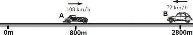 Un móvil sale de A hacia B con rapidez de 20 m/s. Simultáneamente otro móvil sale de B hacia A con rapidez de 30 m/s.
