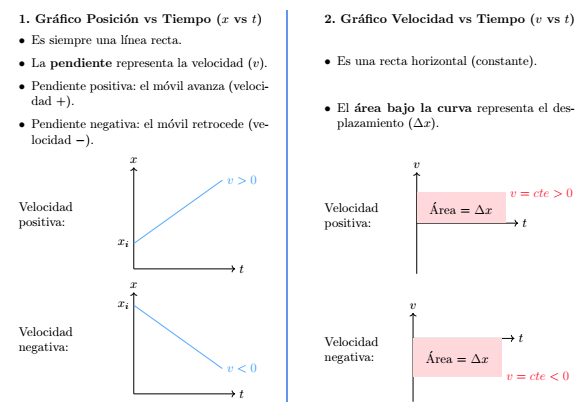 - $\vec{v}$ = velocidad constante (si va hacia la izquierda/negativo, $v$ lleva signo menos).